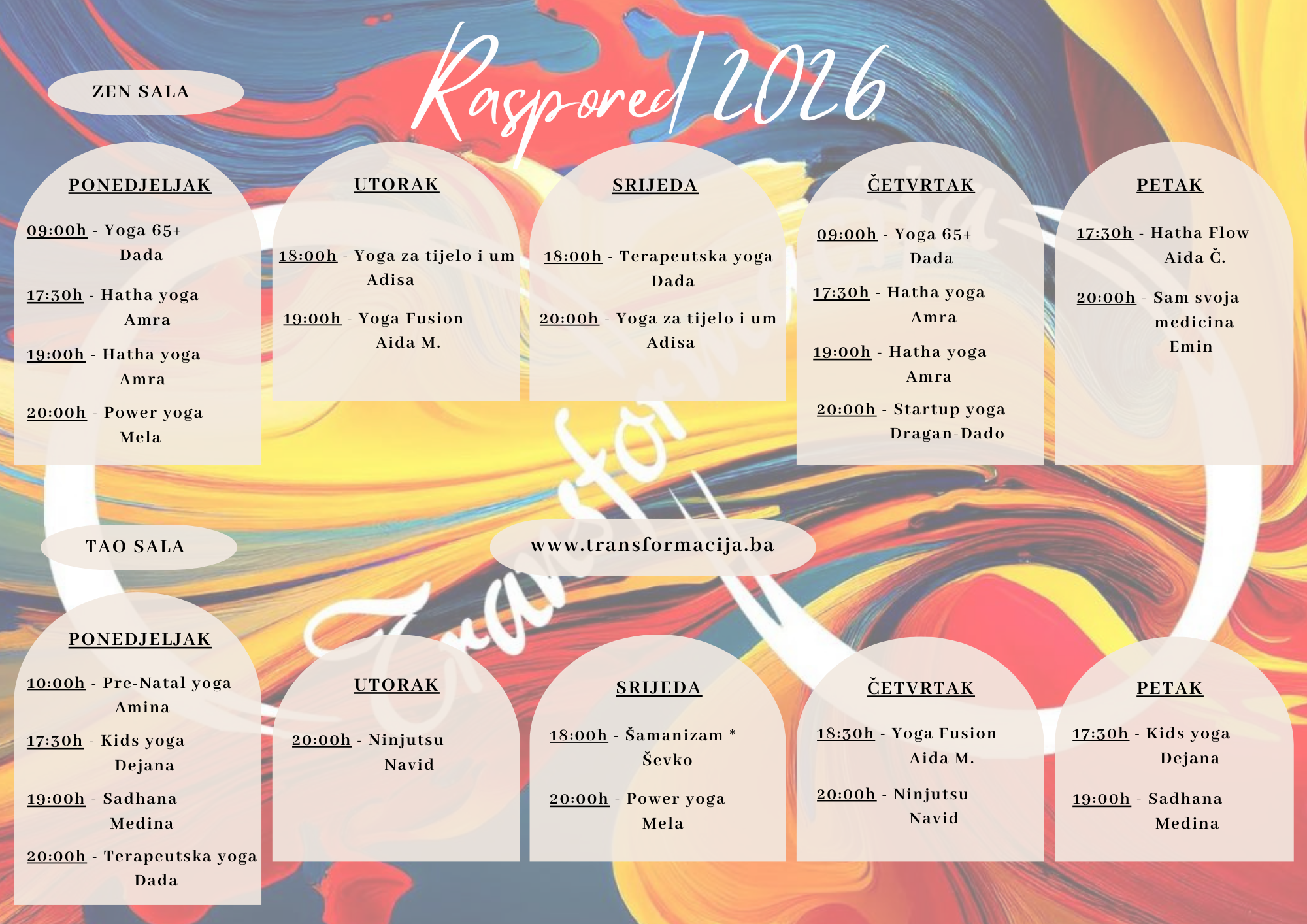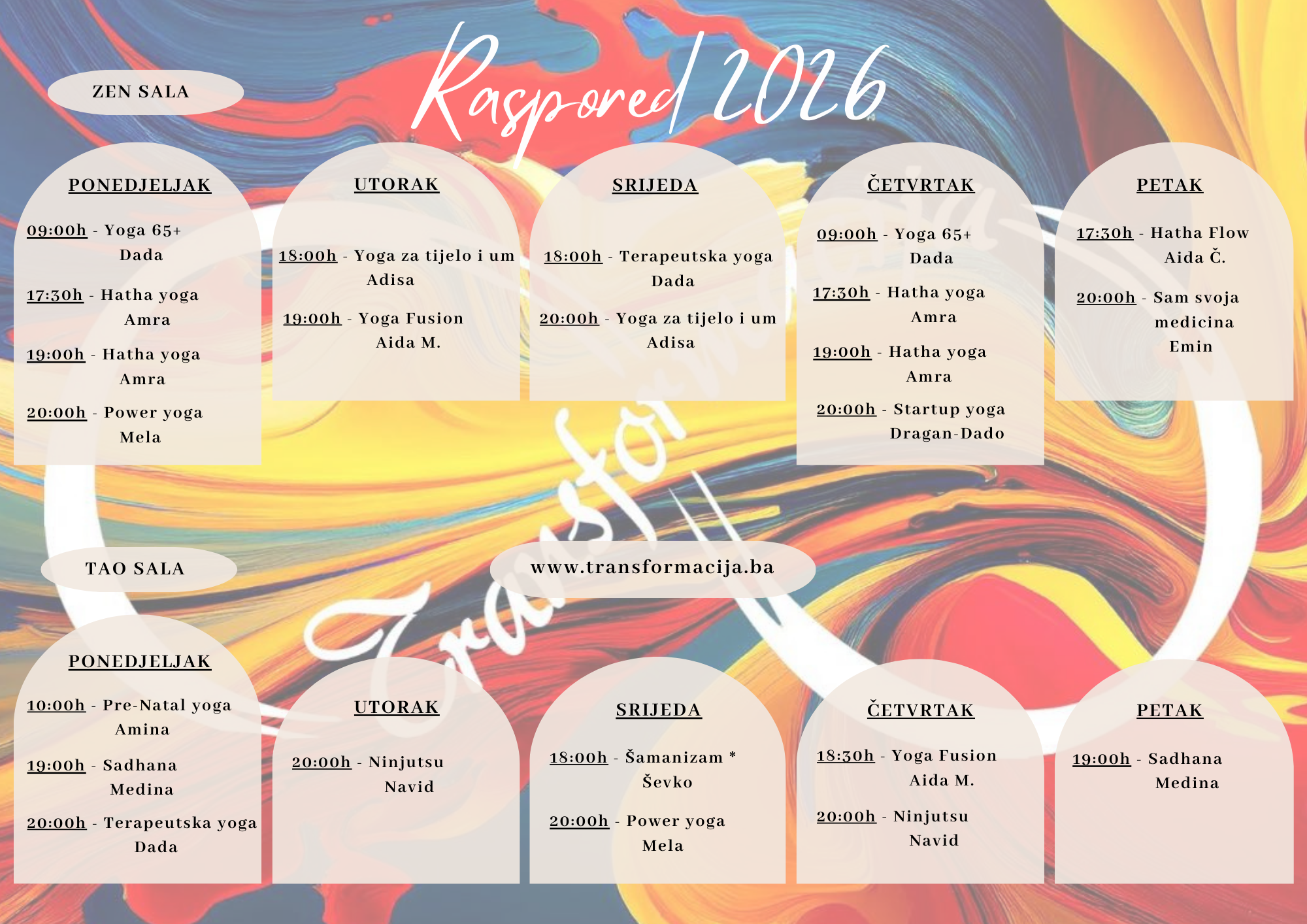Više o treninzima i rasporedima pod rubrikom: Tehnike Transformacije.
